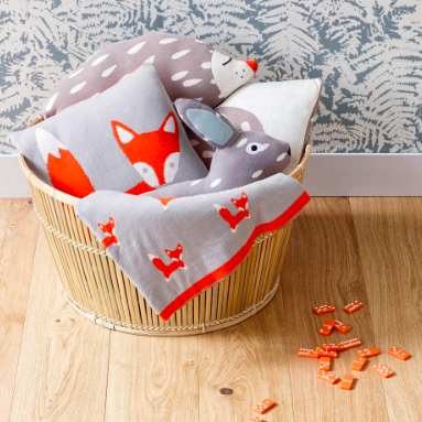 Toujours dans les cadeaux déco, j’aime beaucoup le tapis tipi (109€) et les lampes comme la lampe à poser oiseau (99€) et la lampe Miffy (140€). Les assiettes pré-décorées (24€) me font craquer et c’est une super idée pour présenter les repas de façon originale. La toise photo permet de suivre l’évolution de vos bouts de chou en taille et en photos et j’aime beaucoup les coussins Art For Kids (45 € pour le coussin hérisson).