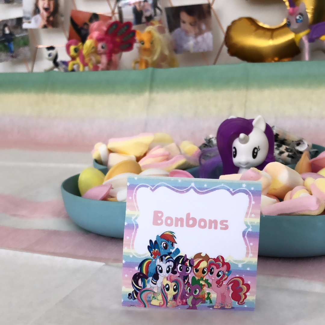 Comme je disais plus haut, cette année je n’ai pas eu autant de temps que je l’aurais voulu pour finaliser la birthday party My Little Pony de ma petite dernière. Alors j’ai décidé de faire plus simple, en croisant les doigts pour que ça lui plaise quand même, et avec la frustration de ne pas pouvoir faire comme je l’avais prévu.