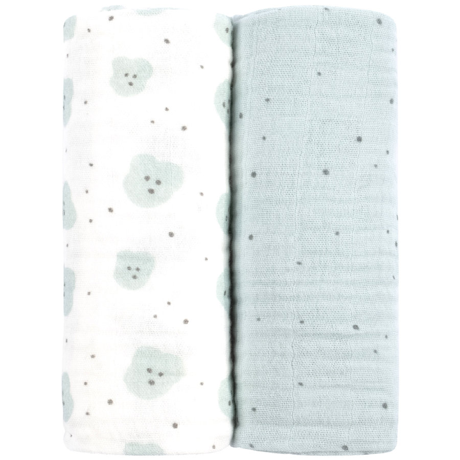 Les langes pour bébé, c’est pour moi un indispensable !  Autant pour servir de petit drap à bébé (sous surveillance !) que bavoir, une protection contre les régurgitations (sur votre épaule ou sur le matelas de bébé), un moyen d’allaiter bébé en public si vous êtes pudique comme moi (sinon, pas besoin hein, allaiter partout c’est un geste normal ). Bref, j’ai mis des langes sur ma liste de naissance ! J’en ai déjà acheté des petits en 60×60 chez Hema mais le mieux reste les maxi langes de 80×80 voire plus d’un mètre ! J’en ai trouvé 2 lots chez Rose ou Bleu : un lot vert menthe et un lot rose (tous deux hors stock, bien sur :p)