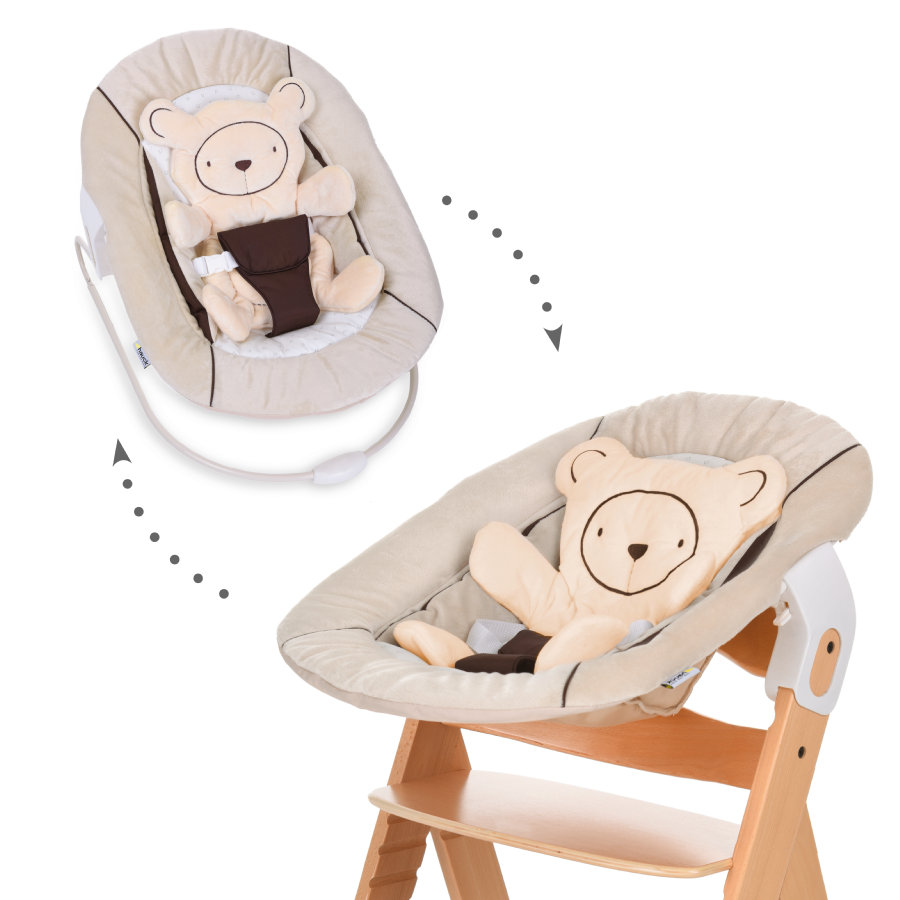 Alors là, on est clairement sur un produit qui n’aura pas d’utilité avant quelques mois… Mais je voulais une chaise haute évolutive en bois pour l’utiliser plusieurs années. La célèbre chaise de Stokke étant clairement hors budget, je me suis rabattue sur un modèle de chez Hauck avec en option un coussin de chaise et un transat qui s’adaptent dessus (ce dernier peut aussi être utilisé seul). On y ajoutera si besoin une arche universelle pour l’éveil.