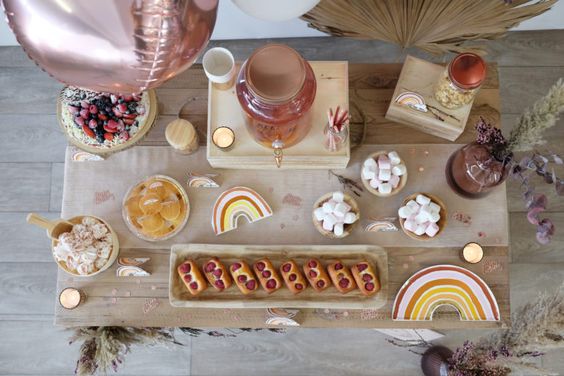 C’est un thème inspiré de la tendance du moment pour le terracotta et la déco boho : le thème arc en ciel terracotta est assez présent sur les réseaux et notamment sur Pinterest. C’est d’ailleurs aussi cette inspiration que j’ai retenue pour la future chambre de Bébéloute, mais on y reviendra dans un article dédié !