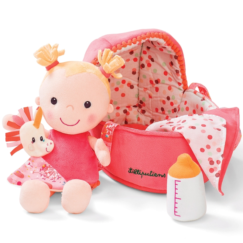 Chez nous, le premier anniversaire rime souvent avec premier poupon, que ce soit pour une fille ou un garçon ! A l’âge ou bébé commence à faire de vrais bisous et câlins et surtout à imiter, une poupée adaptée à son âge (pas trop grande, pas trop lourde, plutôt souple et simple) est une vraie bonne idée. Vous pouvez également penser aux accessoires : poussette (qui peut faire pousseur également), petit couffin…