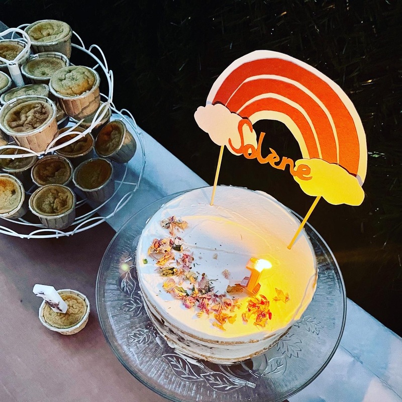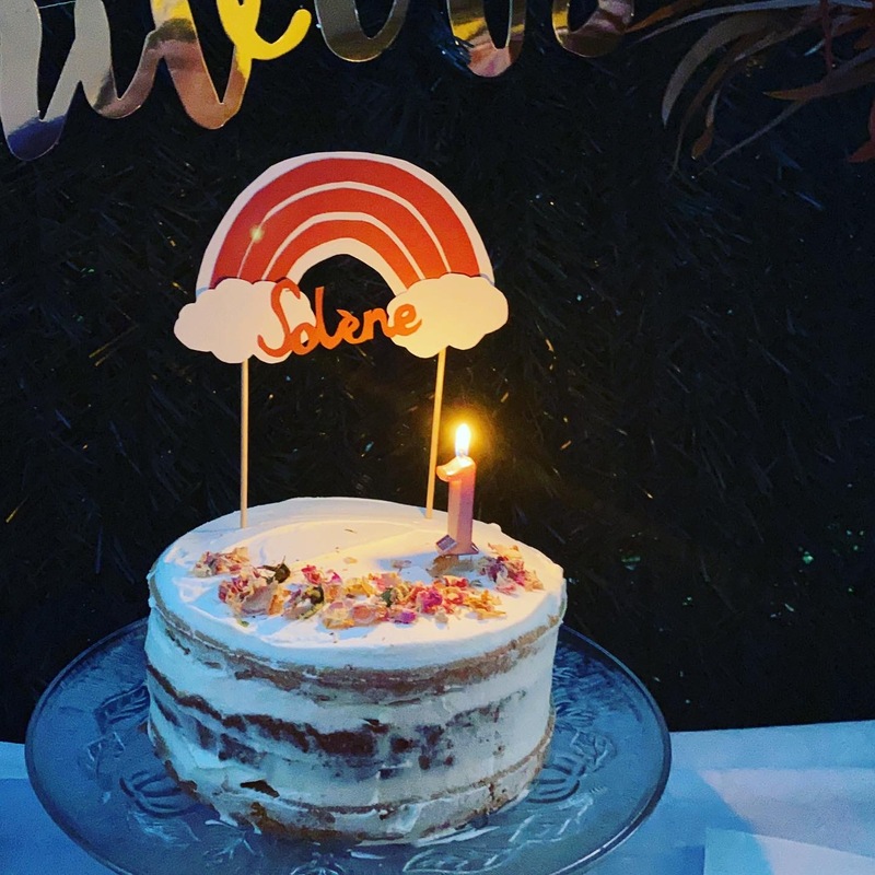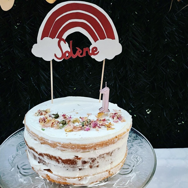 Le mot d’ordre de ce premier anniversaire ? Simplicité ! J’ai vraiment voulu me faciliter la tâche en achetant tout ce qui a constitué le buffet salé. Pour le dessert, des cupcakes maison et un nude cake ont été confectionnés grâce à mon monsieur cuisine (la pâte à cupcakes, la pâte à génoise et même le glaçage/fourrage chantilly mascarpone !) ce qui a été un vrai gain de temps pour moi. Et la déco du gâteau d’anniversaire a aussi été simplissime pour ne pas me prendre la tête : chantilly mascarpone étalée vite fait bien fait, des pétales de roses séchées comestibles… En gros, ça a du me prendre 20 minutes pour fourrer et décorer ce nude cake tout simple qui a fait l’unanimité.