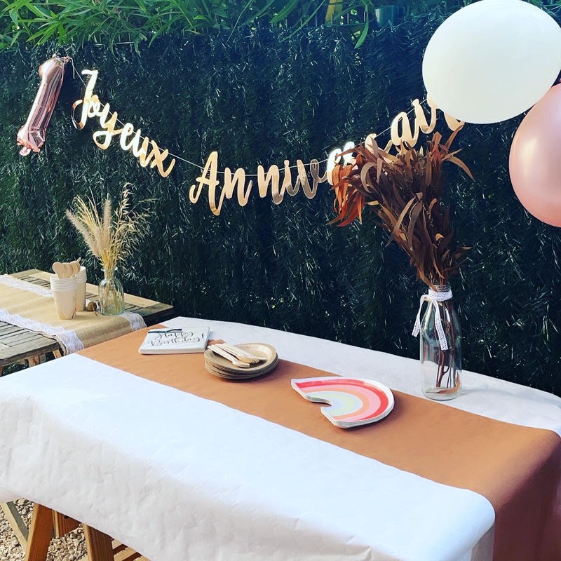 Sur 3 enfants, j’en ai deux nées en plein été. Pas toujours facile d’arriver à réunir tout le monde et de faire une fête où l’on étouffe pas sous la chaleur du sud… Comme cette année, l’anniversaire de ma petite dernière tombait en semaine et que nous partions en vacances le week-end d’après, nous avons décidé d’organiser un petit apéritif entre proches le soir même de ses 1 an. Et comme en fin de journée il fait bien meilleur dehors, nous avons même pu organiser la petite fête dans notre jardin au son des cigales !