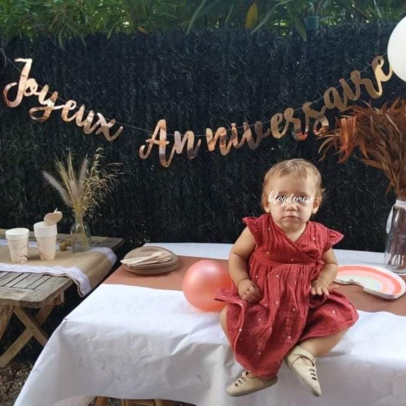 Voilà pour la première fête d’anniversaire de mon bébé sur le thème arc-en-ciel terracotta, avec un peu de rose gold, d’écru, de kraft et pas mal de débrouille 🙂 Au final, c’est très simple et ça m’a pris moins de temps que les anniversaires précédents pour un résultat tout aussi satisfaisant !