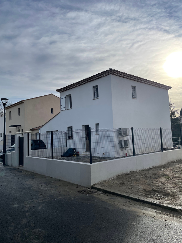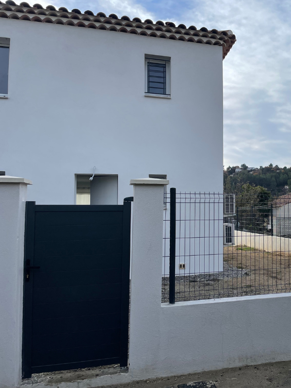 Et puis, on a ENFIN des clôtures autour de notre terrain, avec un portillon. Et ça change vraiment l’aspect extérieur, ça fait plus fini. Je peux laisser mes filles jouer dehors sans crainte (bon, quand il fera meilleur et que le jardin sera moins boueux…) Finalement, ça a été très rapide, entre la pose des murets puis celle du grillage par des maçons, on est les premiers du lotissement à avoir une clôture !