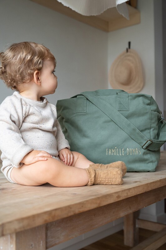 - Le sac à langer personnalisé : parce que clairement, les sacs à langer tout plastique avec des couleurs criardes, c’est pas trop mon truc… Ce joli sac est spacieux, bien organisé, proposé soit en lin ou en coton avec évidemment la possibilité de personnalisation. Le petit plus ? Quand les enfants grandissent, on peut le réutiliser sans souci en joli sac de voyage pour les week-ends en famille !