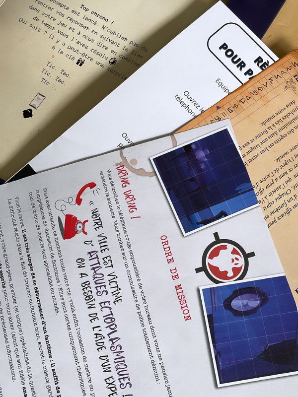 Le concept des jeux Home Scape Home, c’est de vous proposer une expérience d’escape game ludique à la maison : vous recevez un kit papier avec un dossier et des supports pour avancer dans votre enquête. Tout est interactif, on renseigne ses réponses sur son téléphone ou son ordinateur.