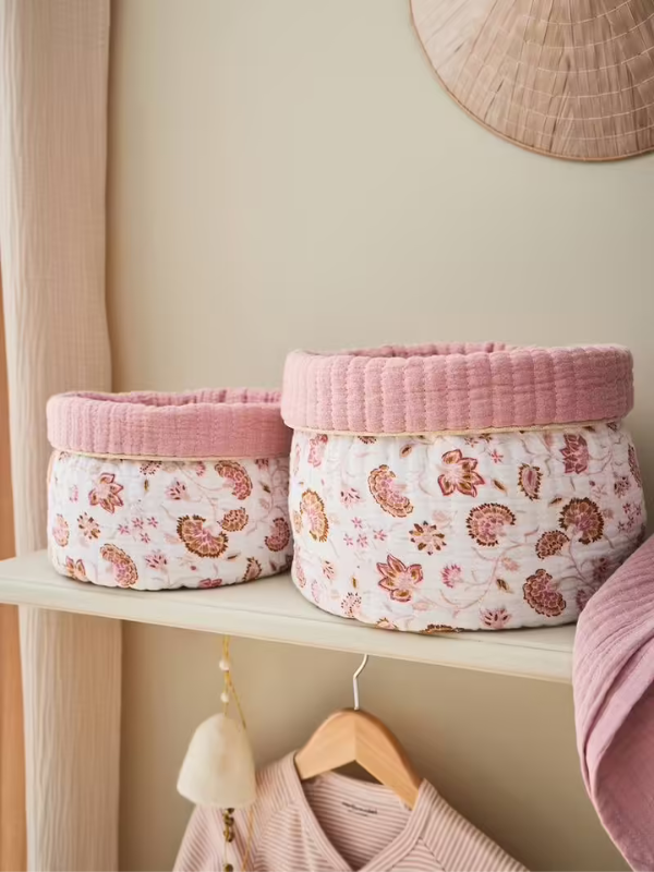 - Le lot de 2 paniers tissu rose : 14,99 €