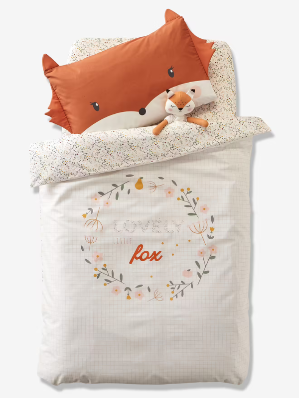 - La parure renard terracotta : celle-ci, je l’ai déjà et vous l’aimez beaucoup dans mes stories insta, elle passe à 39,37 € avec le drap housse 60×120, la housse de couette bébé et la taie d’oreiller.