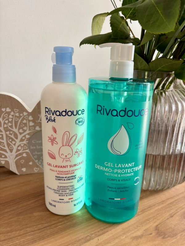Gel lavant bébé, famille et soins peau de maman Rivadouce : test et avis !